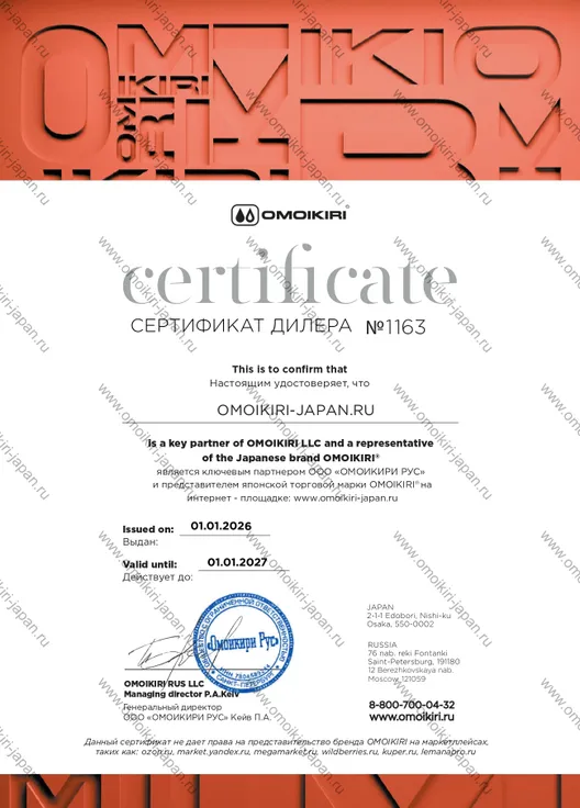 Как официальный дилер гарантируем 100% качество продукции Omoikiri.