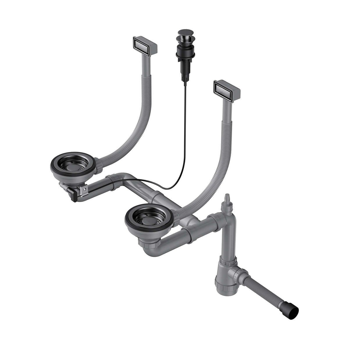 Арматура с клапаном-автоматом для двухчашевых моек с прямоугольными переливами WK-2-A GM