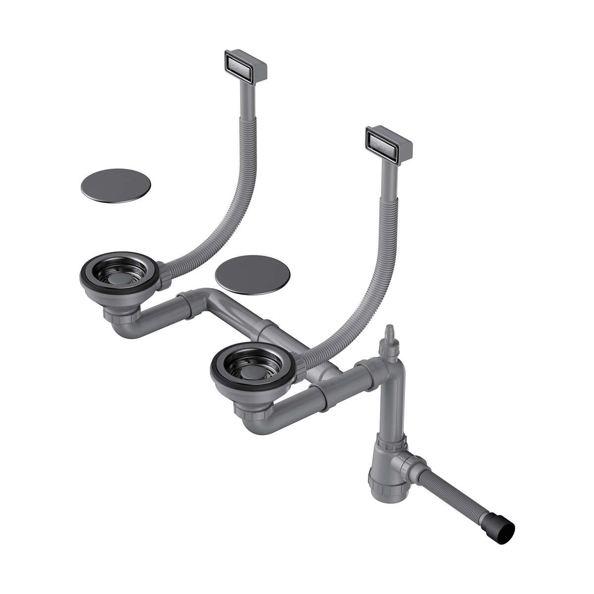 Арматура для двухчашевых моек с прямоугольными переливами и декоративными элементами для корзины WK-2C GM