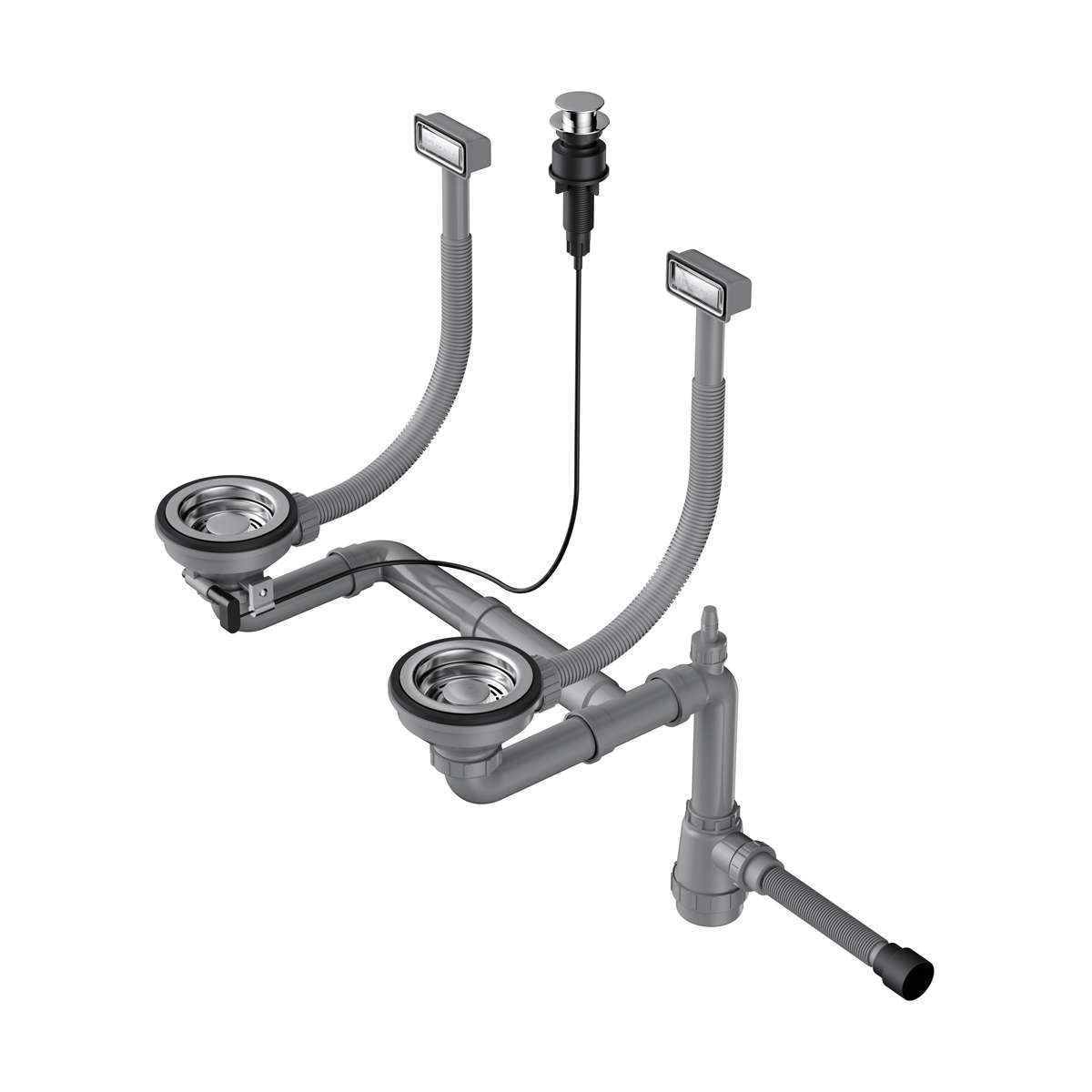Арматура с клапаном-автоматом для двухчашевых моек с прямоугольными переливами WK-2-A