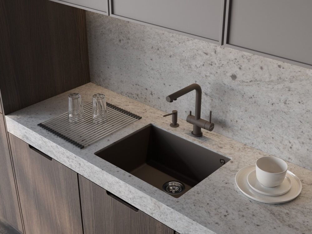 Оттенок и дизайн дозаторов идеально сочетается с кухонными мойками и смесителями OMOIKIRI.