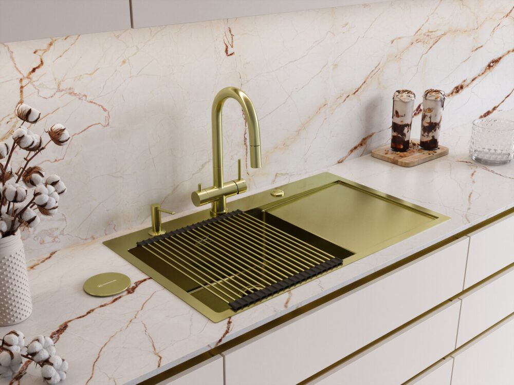 Оттенок и дизайн дозаторов идеально сочетается с кухонными мойками и смесителями OMOIKIRI.