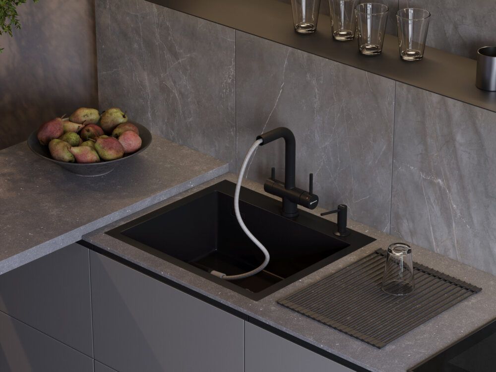 Оттенок и дизайн дозаторов идеально сочетается с кухонными мойками и смесителями OMOIKIRI.