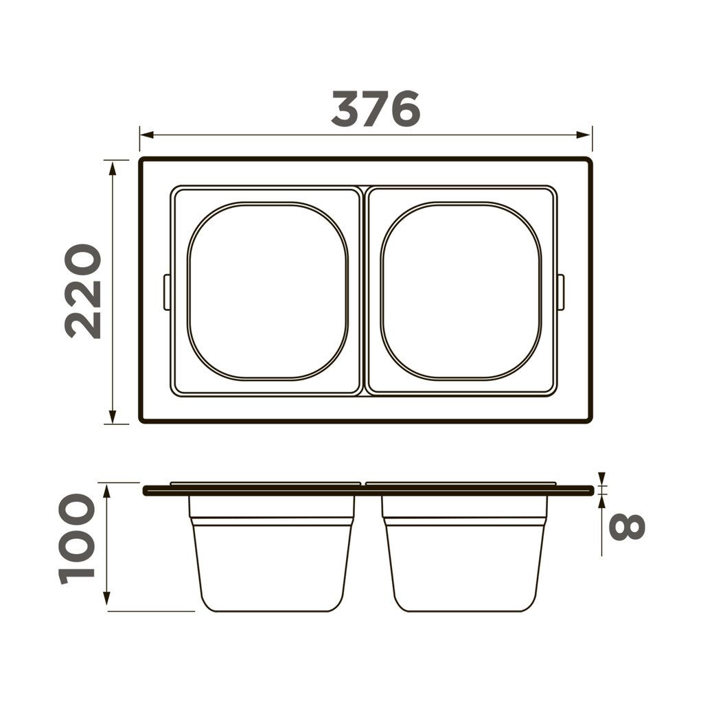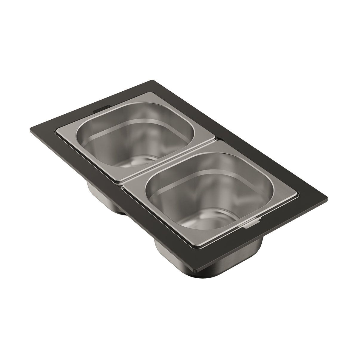 Контейнеры коллекции DC представляют собой различные конфигурации, состоящие из нескольких элементов: одной, двух или трех чаш, изготовленных из нержавеющей стали и фиксирующей подставки, изготовленной из высокопрочного HPL пластика. Чаши свободно вынимаются из пластиковой подставки и перемещаются, а конструкция подставки разработана таким образом, чтобы ее можно было удобно разместить на внутренних ступенчатых направляющих моек, коллекций SINTESI