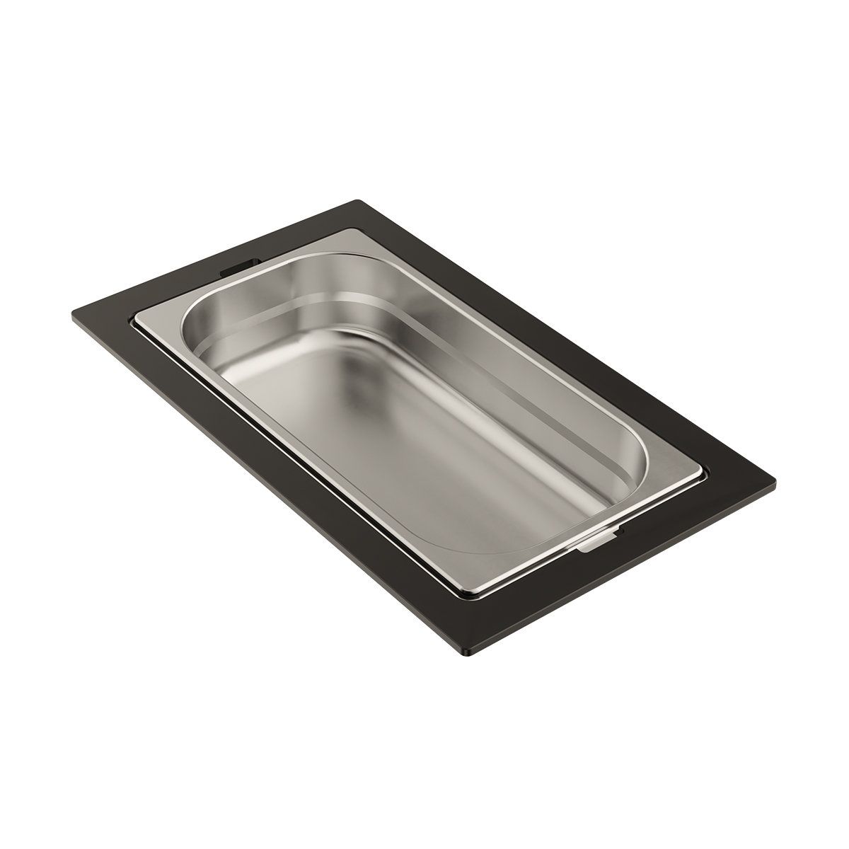 Контейнеры коллекции DC представляют собой различные конфигурации, состоящие из нескольких элементов: одной, двух или трех чаш, изготовленных из нержавеющей стали и фиксирующей подставки, изготовленной из высокопрочного HPL пластика. Чаши свободно вынимаются из пластиковой подставки и перемещаются, а конструкция подставки разработана таким образом, чтобы ее можно было удобно разместить на внутренних ступенчатых направляющих моек, коллекций KITAGAWA