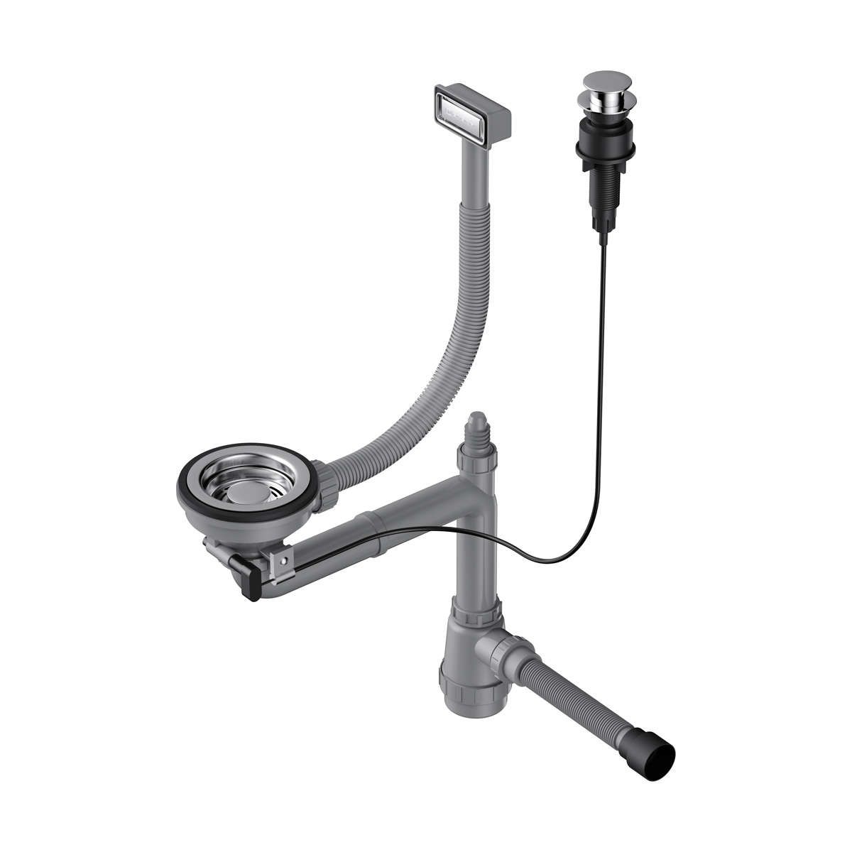 Арматура с клапаном-автоматом для одночашевых моек с прямоугольным переливом и декоративным элементом для корзины WK-1-A