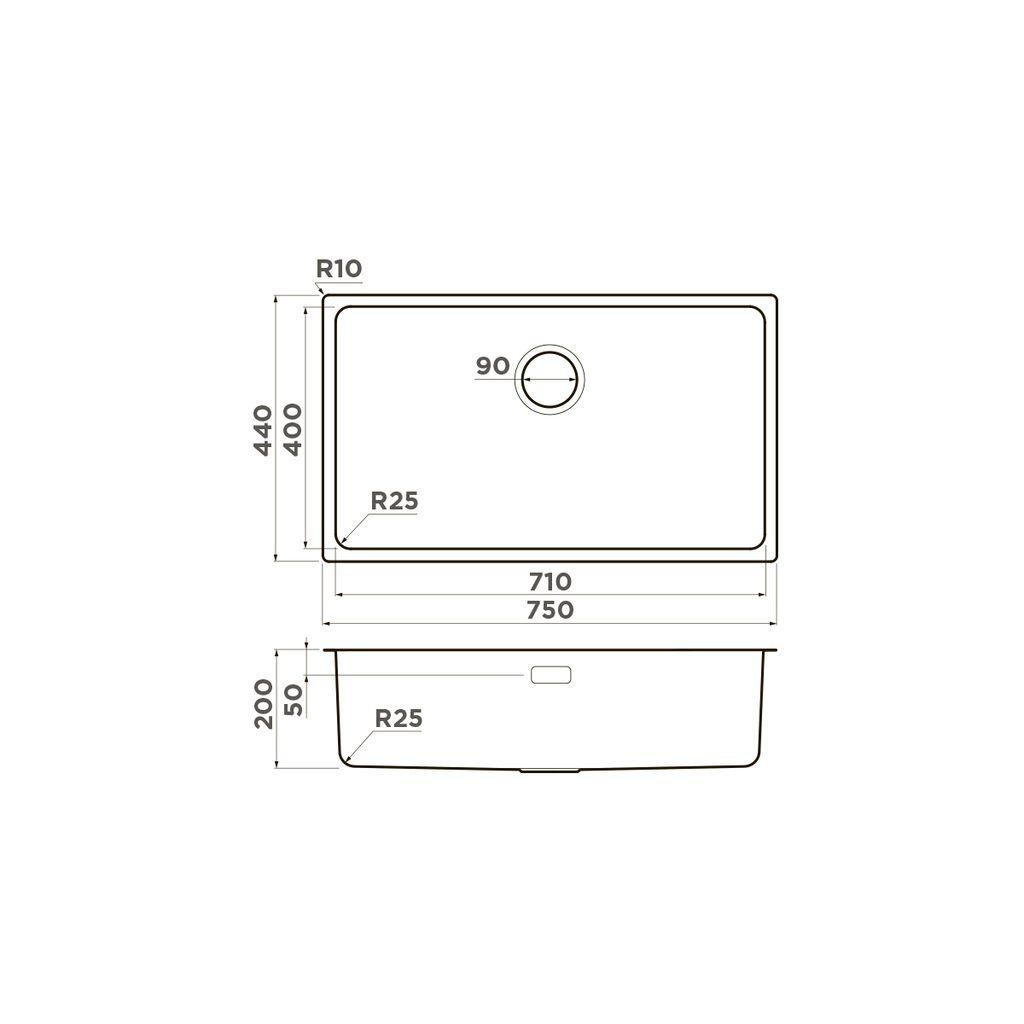 ширина 750 мм x длина 440 мм x глубина 200 мм