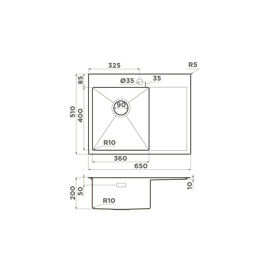 ширина 650 мм x длина 510 мм x глубина 200 мм