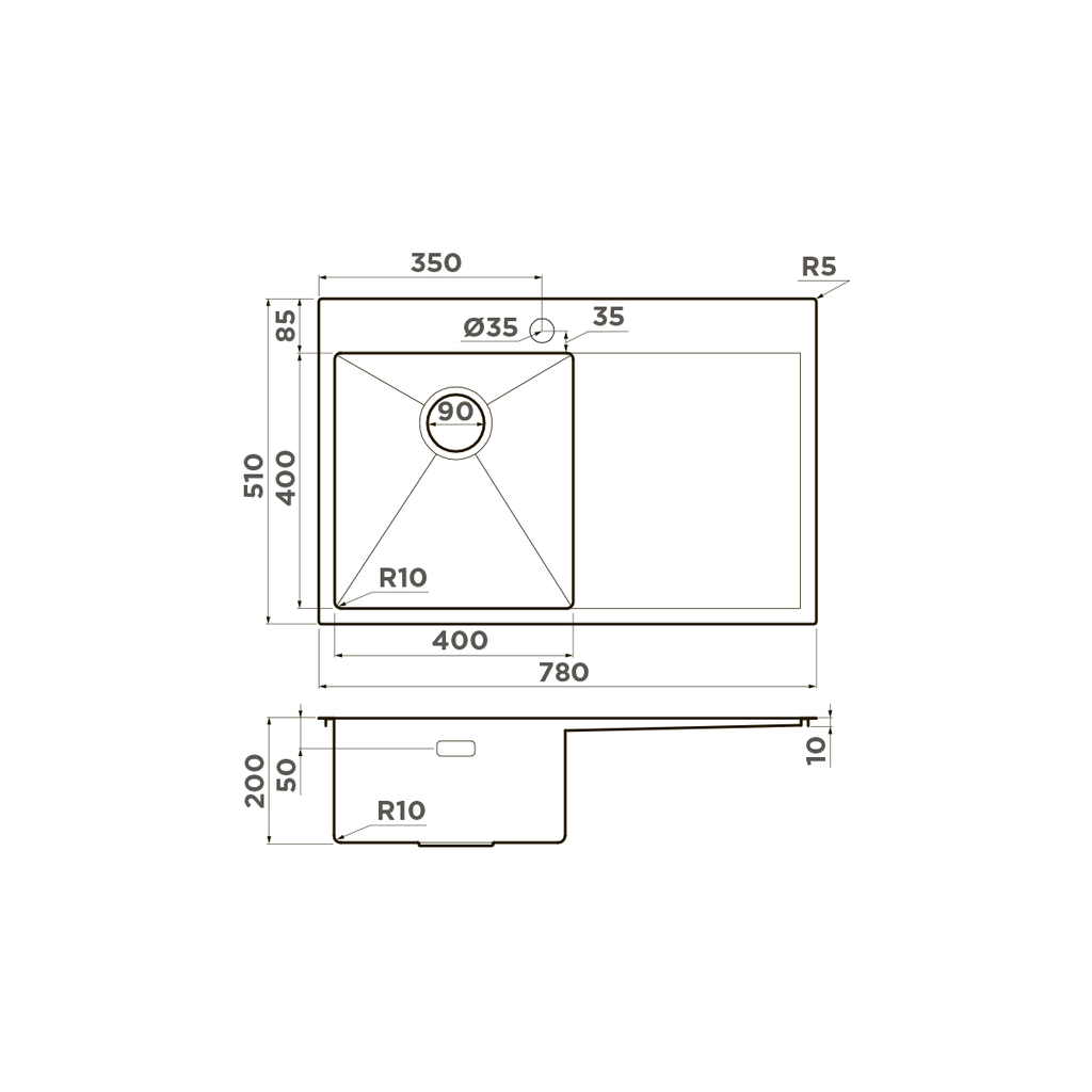 ширина 780 мм x длина 510 мм x глубина 200 мм