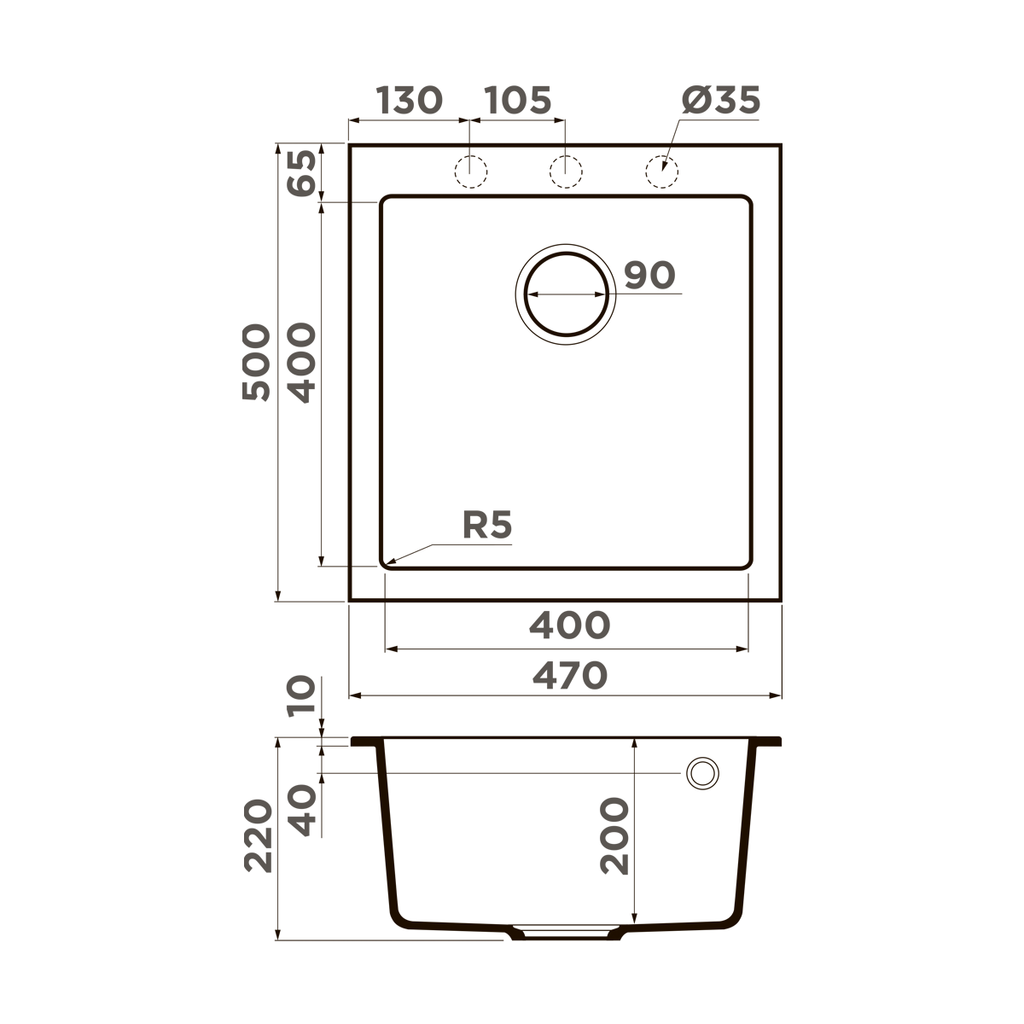 ширина 470 мм x длина 500 мм x глубина 190 мм