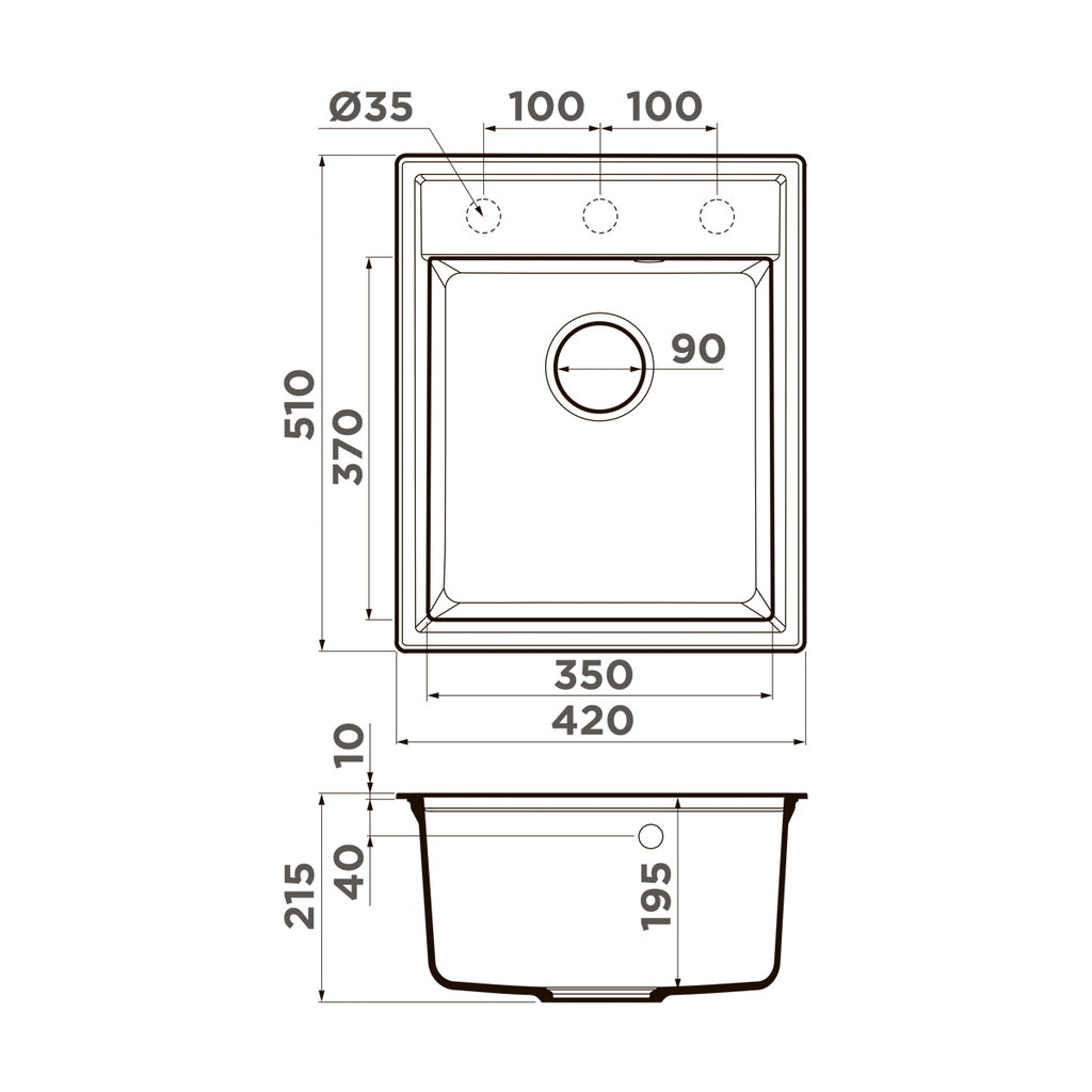 ширина 350 мм x длина 370 мм