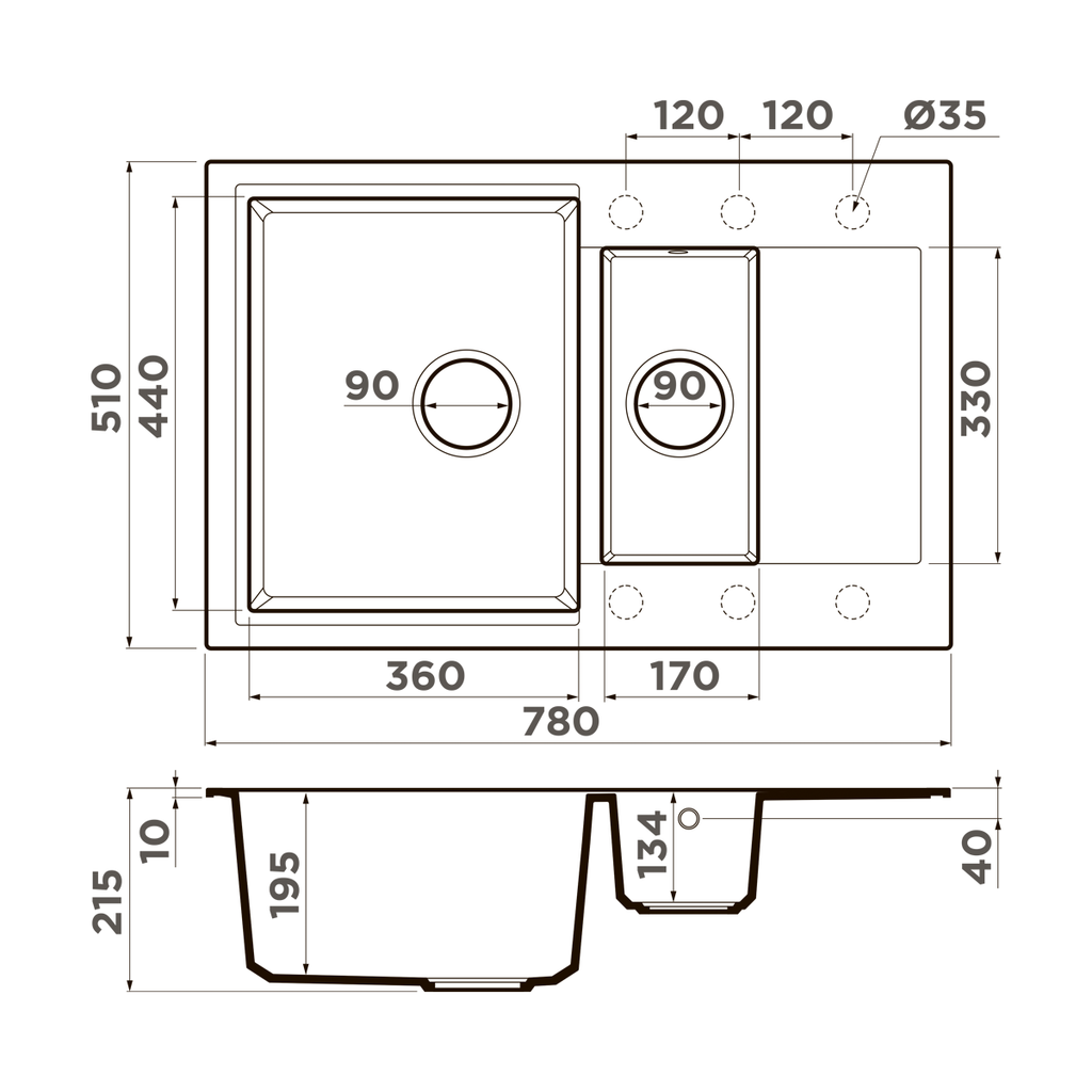 ширина 780 мм x длина 510 мм x глубина 195 мм