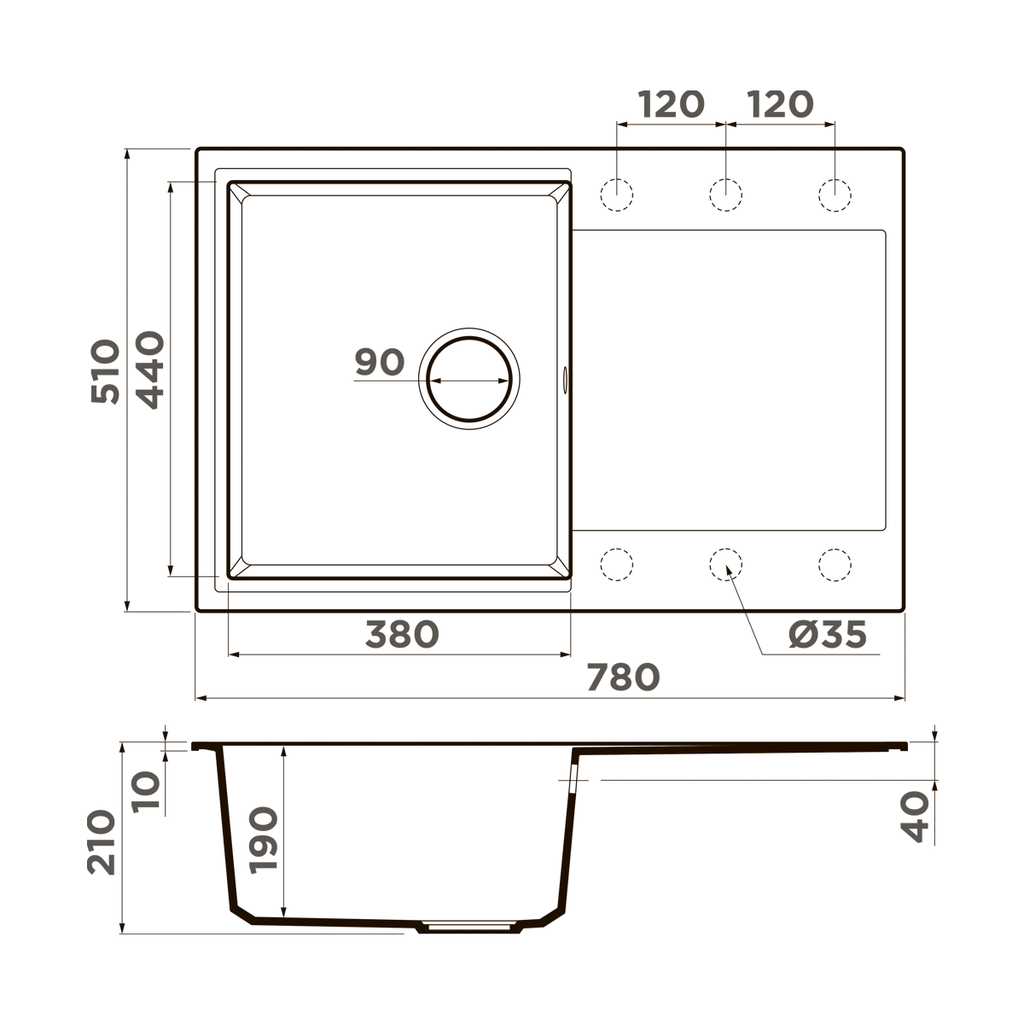 ширина 780 мм x длина 510 мм x глубина 195 мм