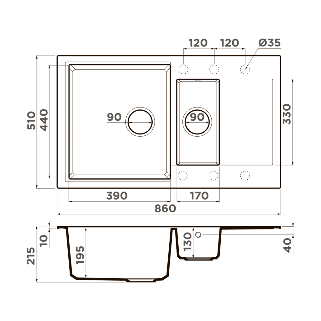 ширина 860 мм x длина 510 мм x глубина 195 мм