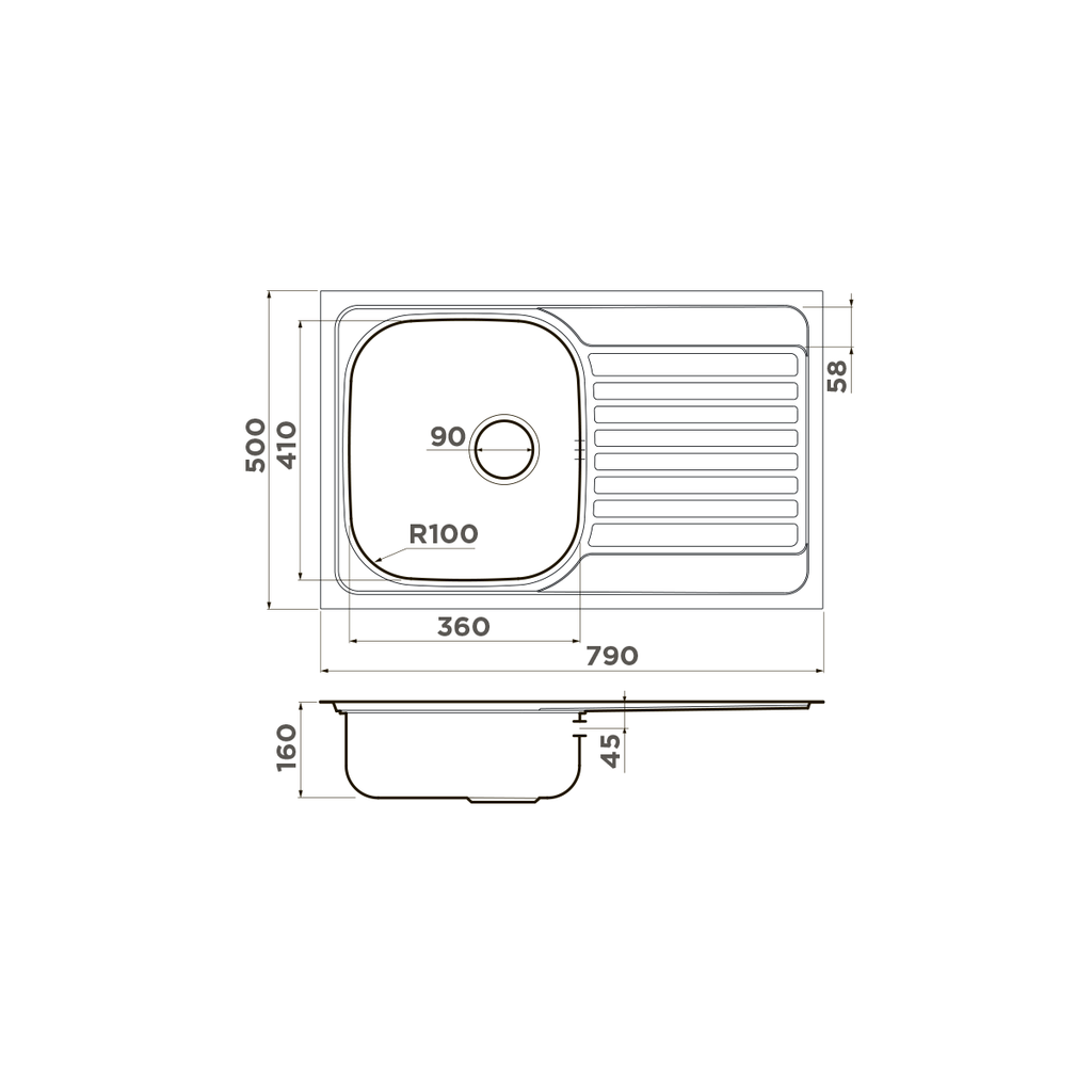 ширина 790 мм x длина 500 мм x глубина 160 мм