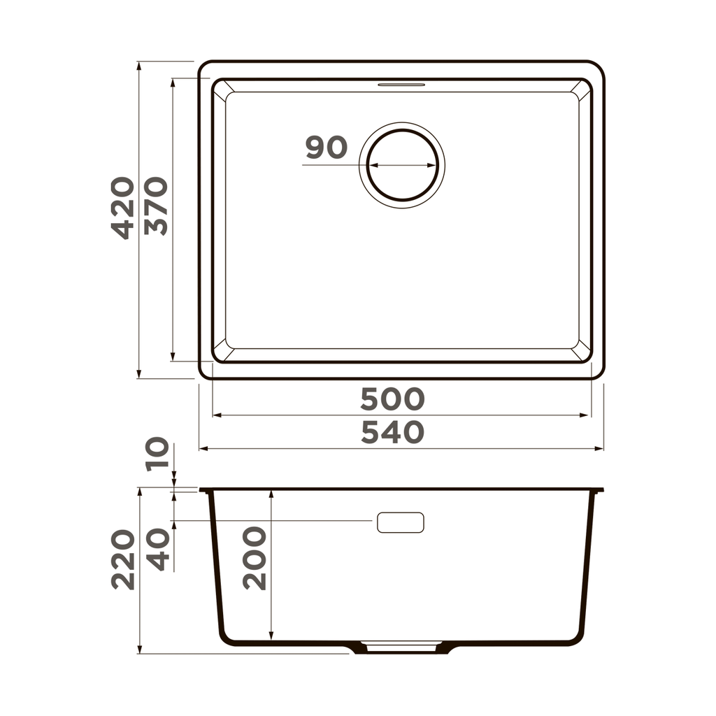 ширина 540 мм x длина 420 мм x глубина 200 мм