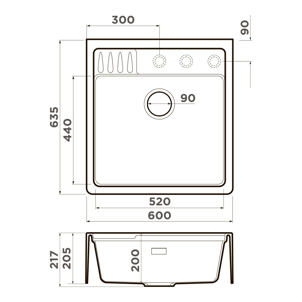 ширина 600 мм x длина 635 мм x глубина 217 мм