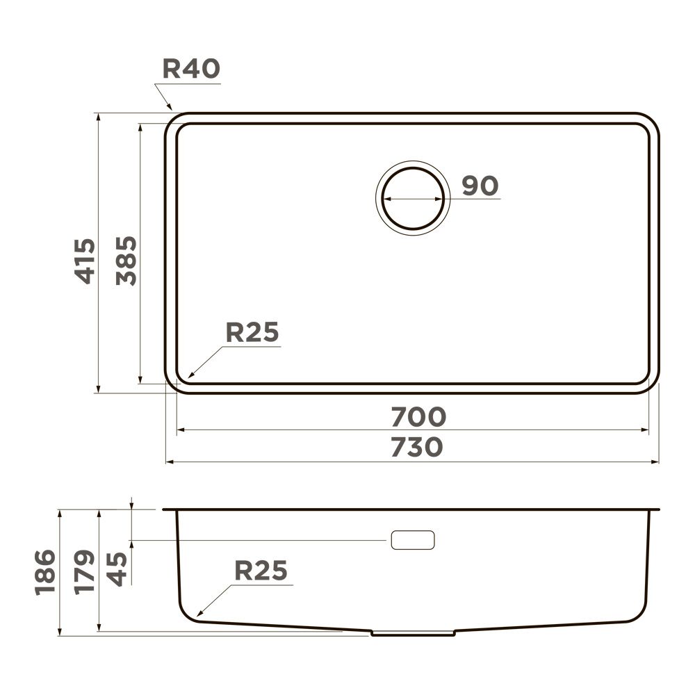 ширина 730 мм x длина 415 мм x глубина 179 мм