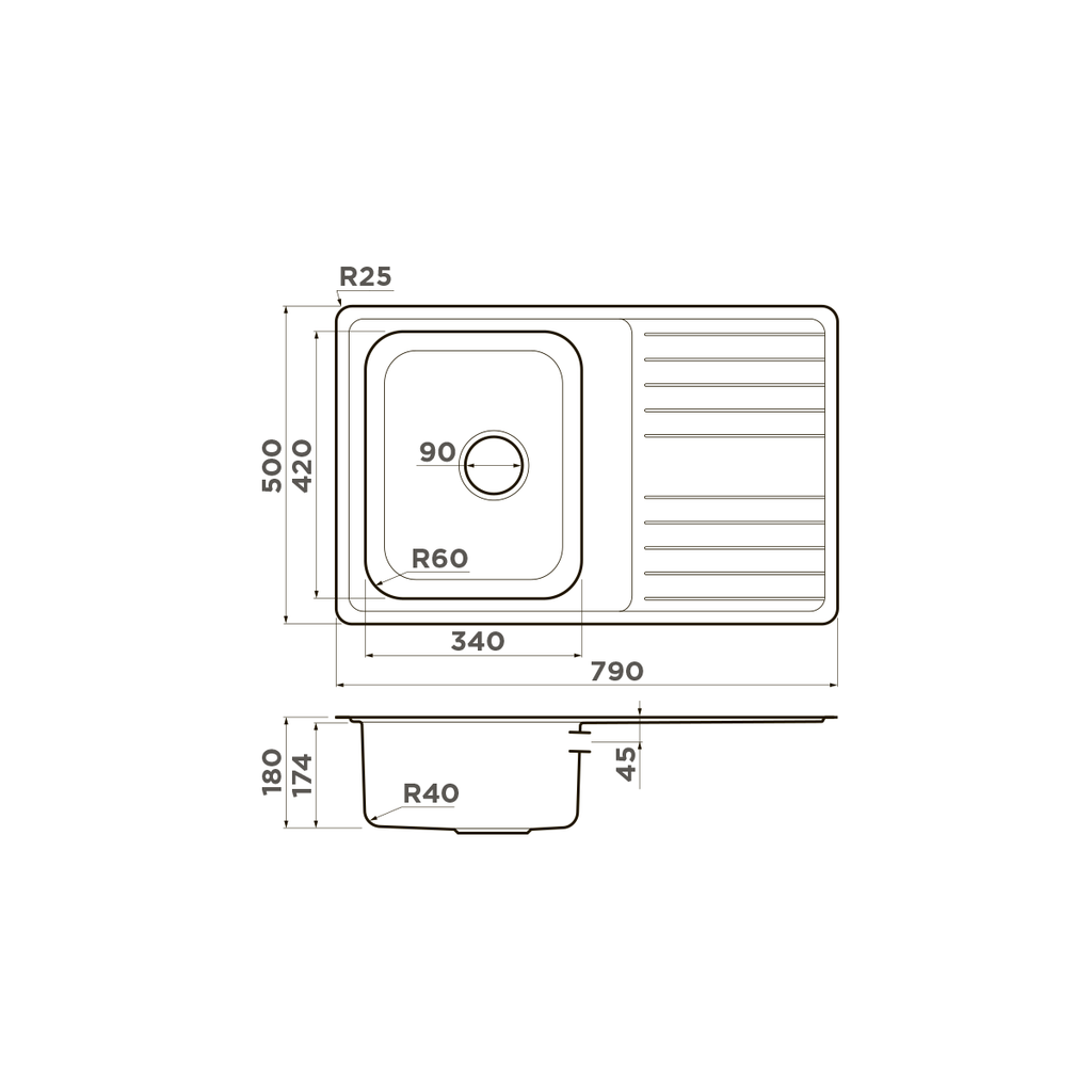 ширина 790 мм x длина 500 мм x глубина 180 мм
