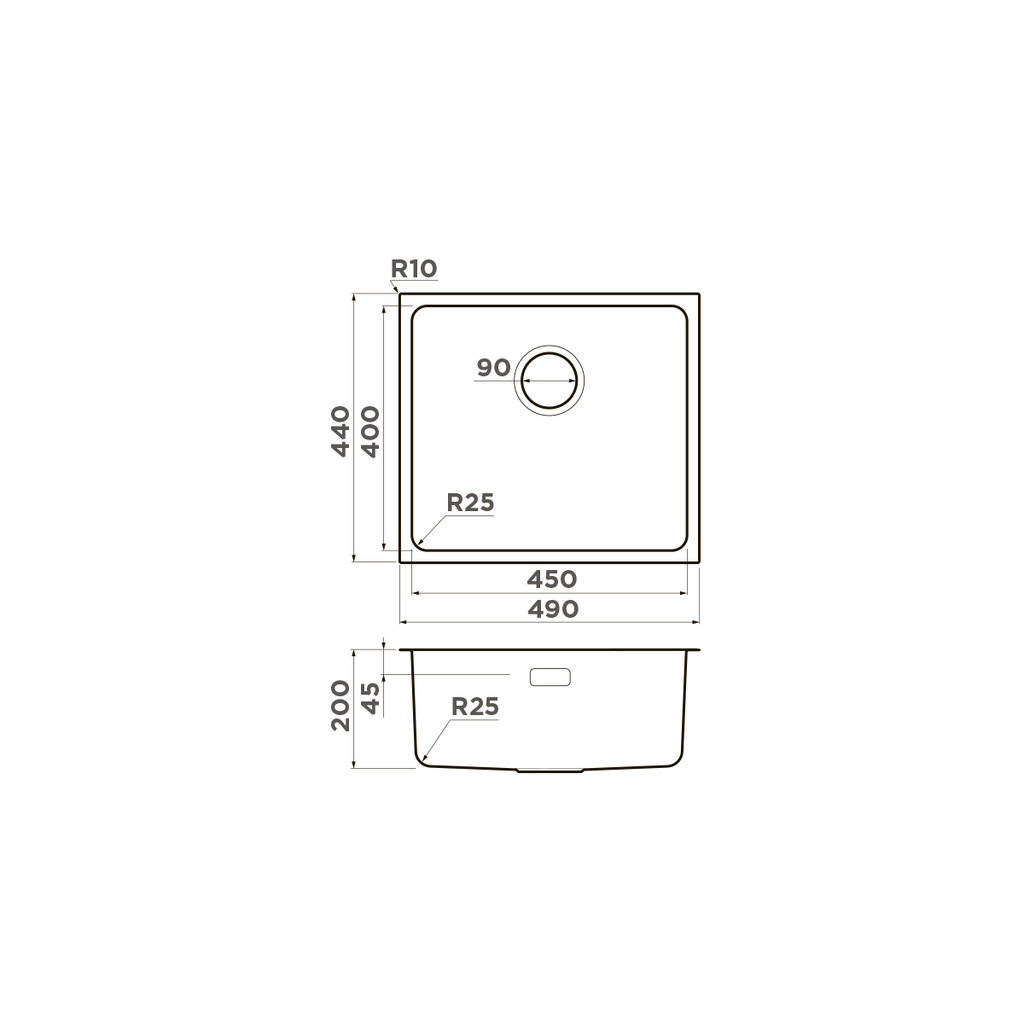 ширина 490 мм x длина 440 мм x глубина 200 мм