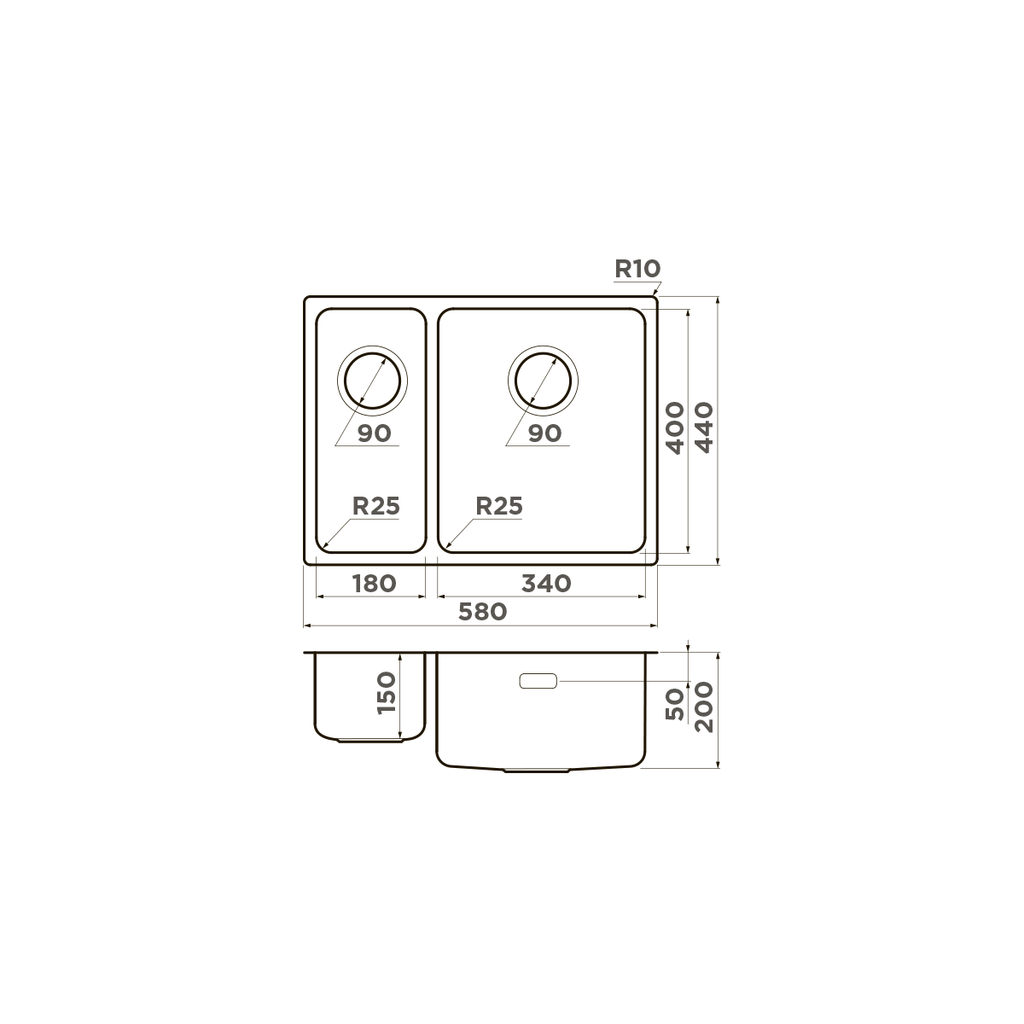 ширина 580 мм x длина 440 мм x глубина 200 мм