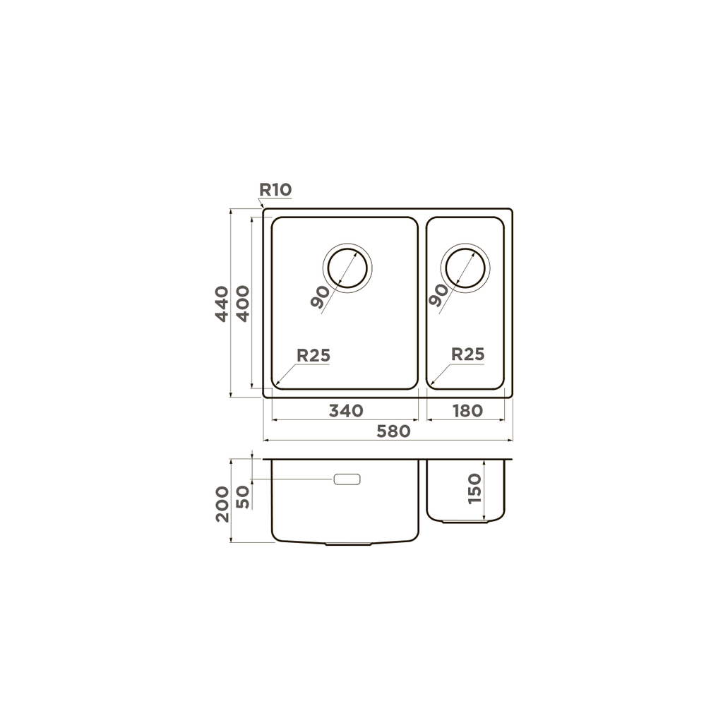 ширина 580 мм x длина 440 мм x глубина 200 мм