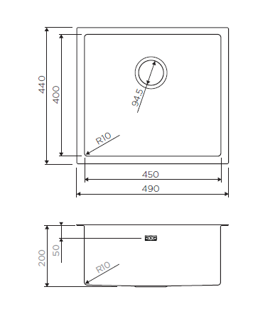 ширина 490 мм x длина 440 мм x глубина 200 мм