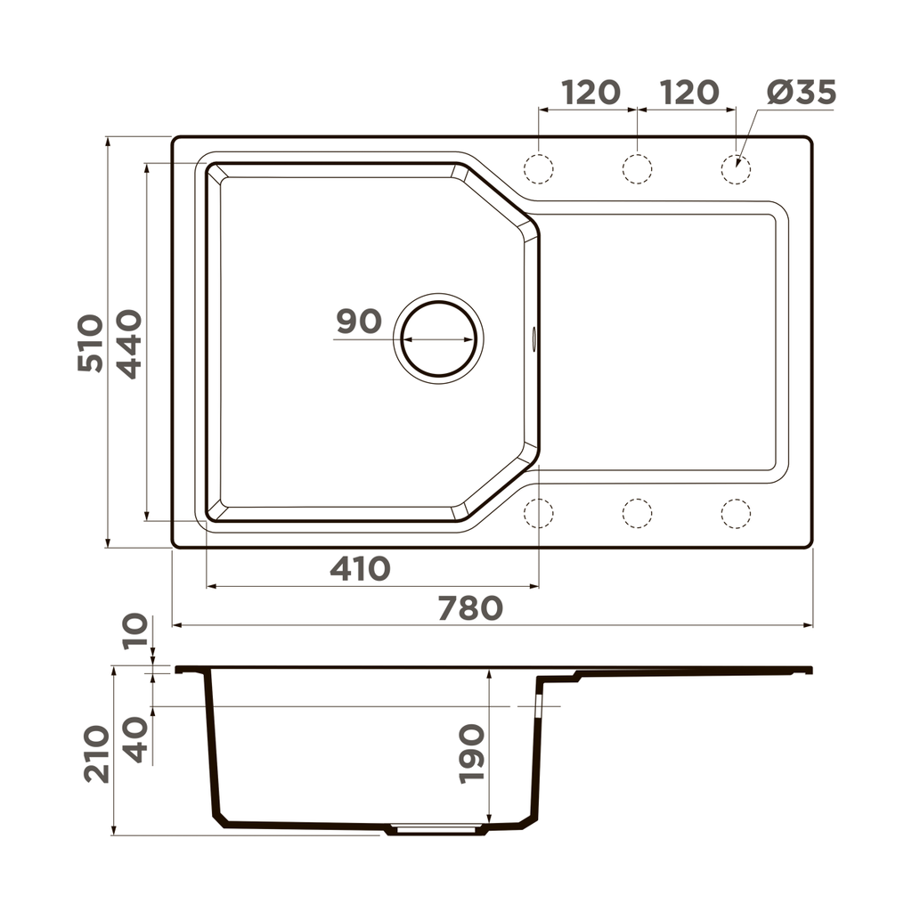 ширина 780 мм x длина 510 мм x глубина 195 мм