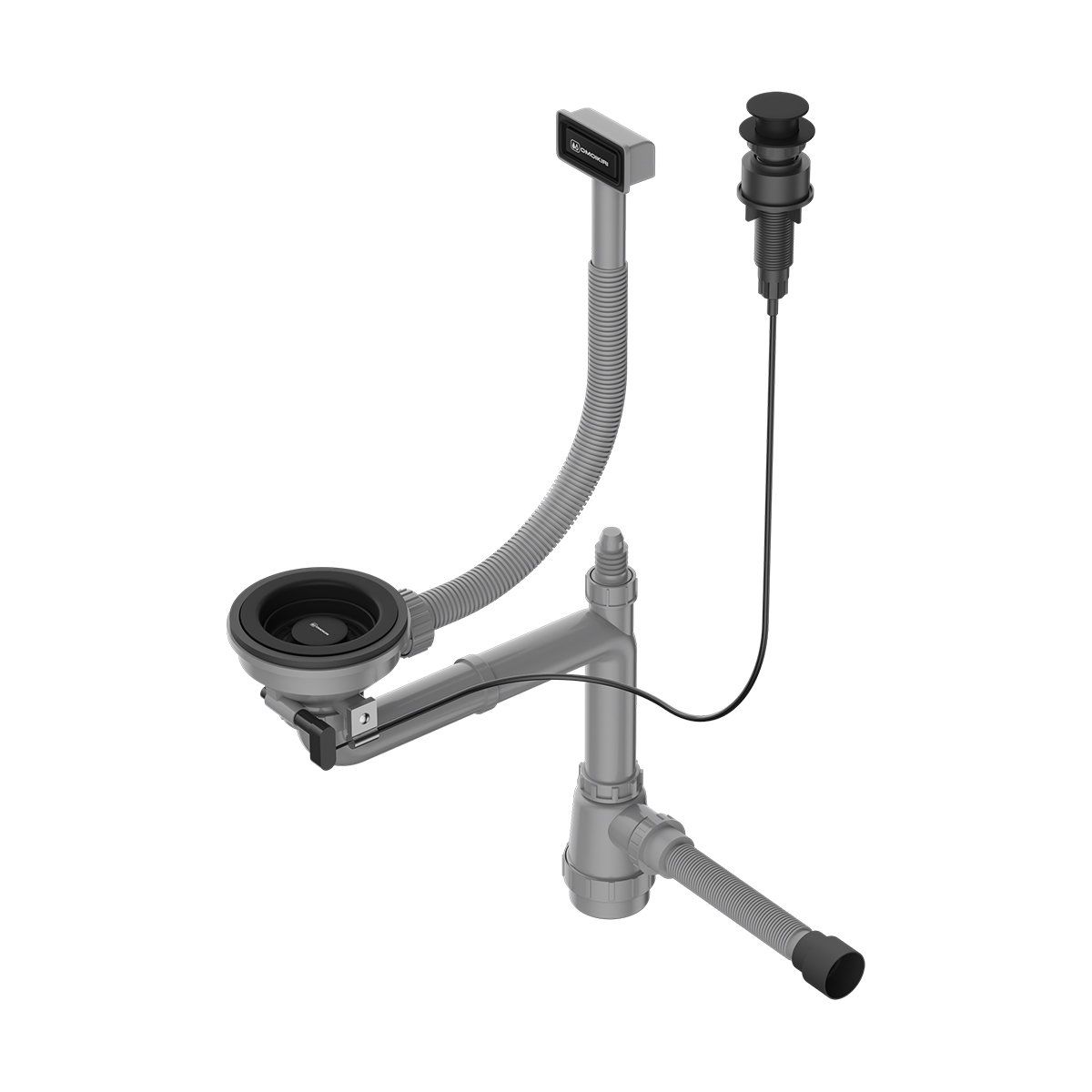 Арматура с клапаном-автоматом для одночашевых моек с прямоугольным переливом и декоративным элементом для корзины WK-1-A GB