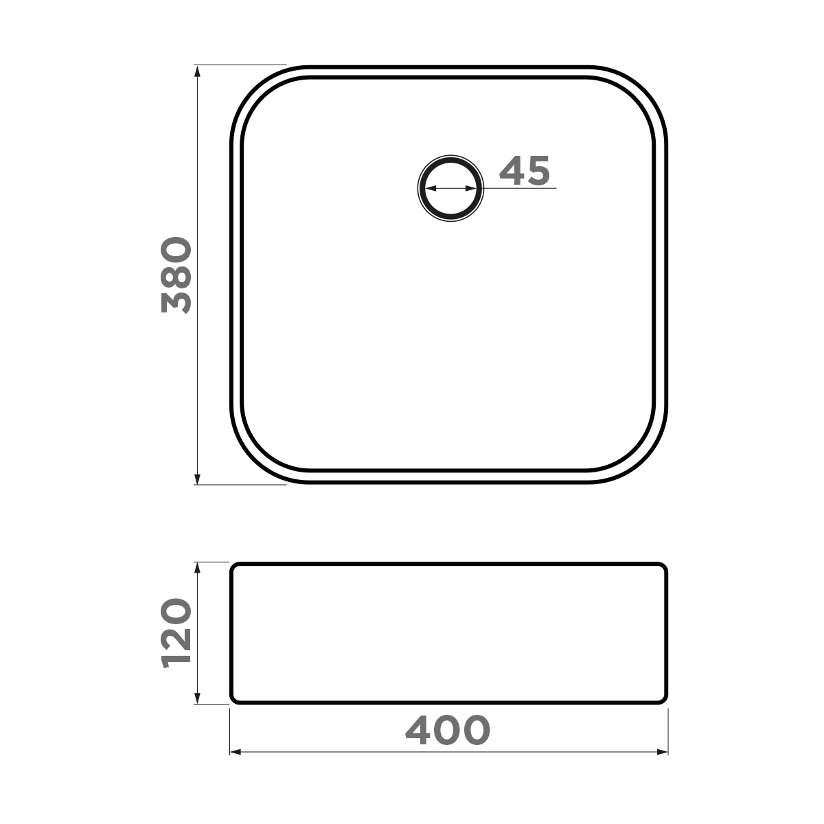 ширина 380 мм x длина 380 мм x глубина 120 мм