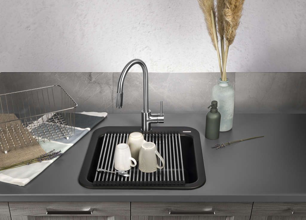 - Ролл-мат Omoikiri закрывает всю чашу мойки, тем самым обеспечивая дополнительное удобство в работе.
