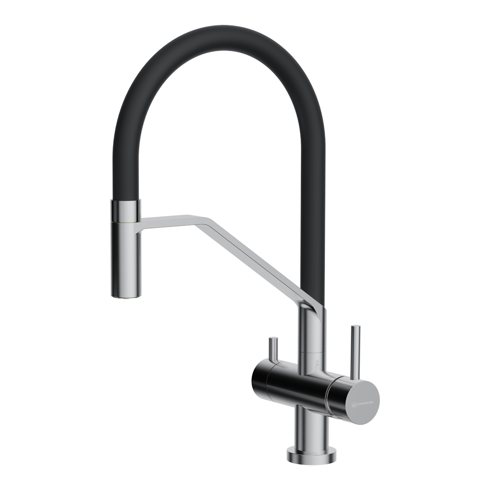 Вытяжной шланг обеспечивает удобство использования смесителя, которое заключается в возможности мытья труднодоступных мест и бережной очистке мелких столовых приборов. С его помощью также можно тщательно промывать овощи, фрукты и посуду после мытья без лишних брызг на столешницу вокруг мойки.