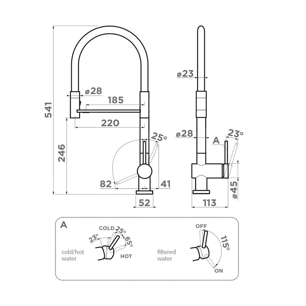 Технология 2 в 1 Multi дает возможность переключать воду с водопроводной на фильтрованную и обратно буквально одним движением руки. С помощью наклона рычага подачи воды под разным углом можно управлять горячей, холодной и питьевой водой.