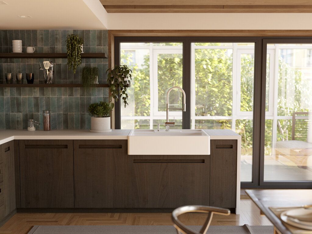 Безусловным плюсом кнопки переключения потока воды со струи на душ является отсутствие брызг в процессе использования смесителя. Вода при таком типе подачи охватывает большую площадь, тем самым делая процесс мытья посуды или ингредиентов для блюд в разы быстрее и гигиеничнее.