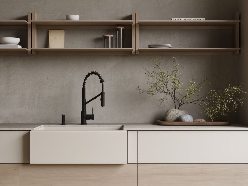 Безусловным плюсом кнопки переключения потока воды со струи на душ является отсутствие брызг в процессе использования смесителя. Вода при таком типе подачи охватывает большую площадь, тем самым делая процесс мытья посуды или ингредиентов для блюд в разы быстрее и гигиеничнее.
