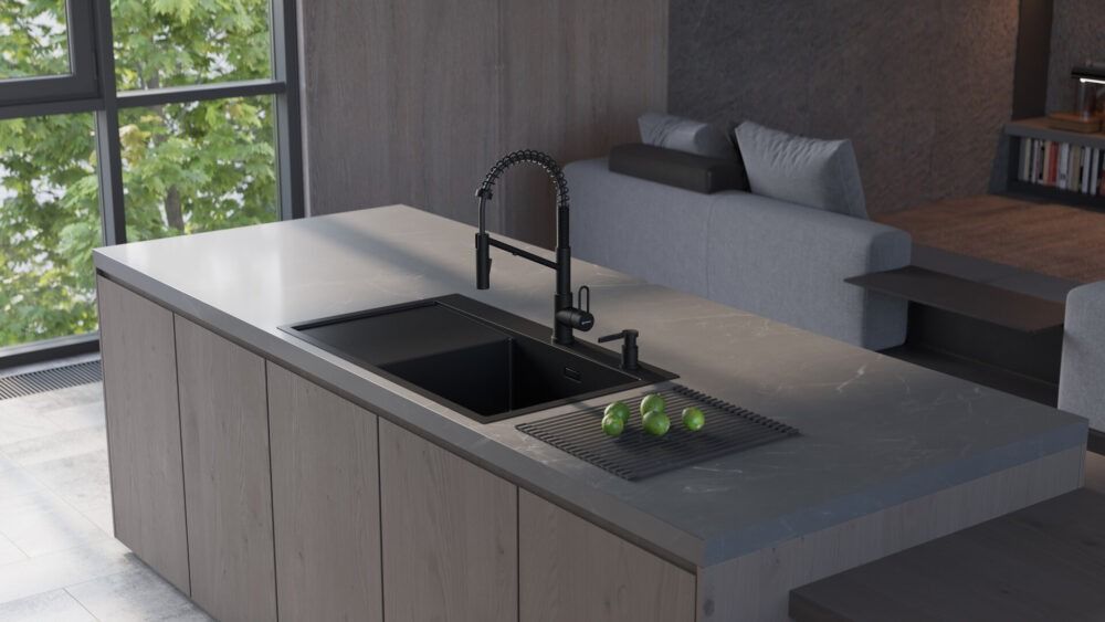 Вытяжной шланг обеспечивает удобство использования смесителя, которое заключается в возможности мытья труднодоступных мест и бережной очистке мелких столовых приборов. С его помощью также можно тщательно промывать овощи, фрукты и посуду после мытья без лишних брызг на столешницу вокруг мойки.