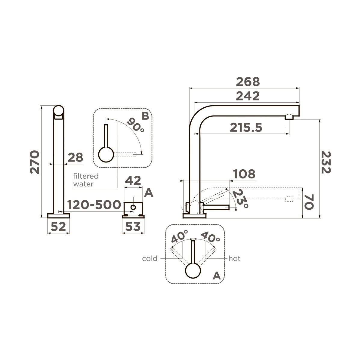 Технология 2 в 1 Multi дает возможность переключать воду с водопроводной на фильтрованную и обратно буквально одним движением руки. С помощью наклона рычага подачи воды под разным углом можно управлять горячей, холодной и питьевой водой.