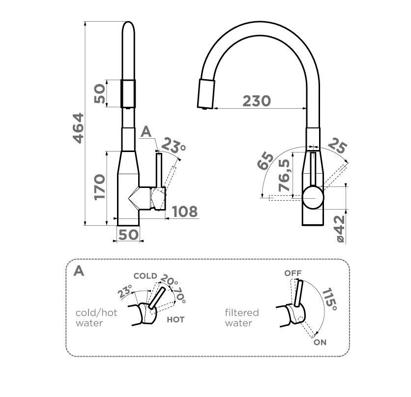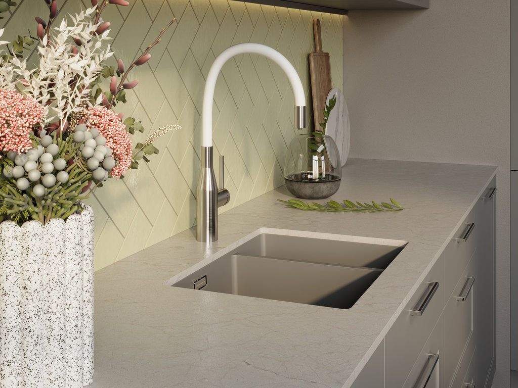 Технология 2 в 1 Multi дает возможность переключать воду с водопроводной на фильтрованную и обратно буквально одним движением руки. С помощью наклона рычага подачи воды под разным углом можно управлять горячей, холодной и питьевой водой.